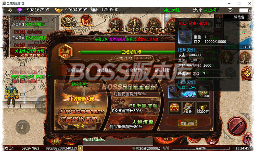 【独家996三端互通】神之大陆,神器,专属,攻速,跨服战场,神剑buff,印记,生肖,职业天赋,鞭尸,【精品版】 | ||
