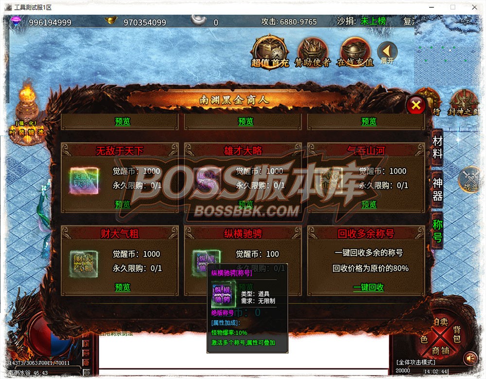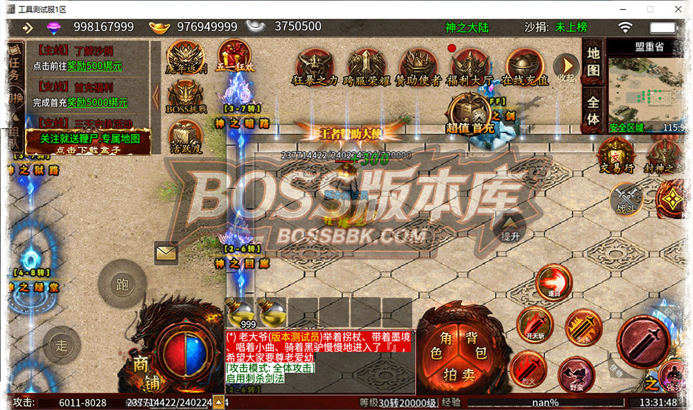 【独家996三端互通】神之大陆,神器,专属,攻速,跨服战场,神剑buff,印记,生肖,职业天赋,鞭尸,【精品版】