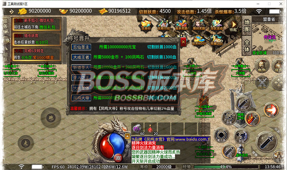 【独家996三端互通】凤鸣冰雪,任务引导,沙捐狂暴,称号渡劫,时装印记,挂机自动回收自动拾取,商业版本【冰雪版】